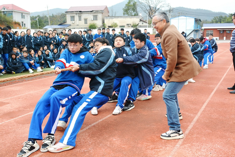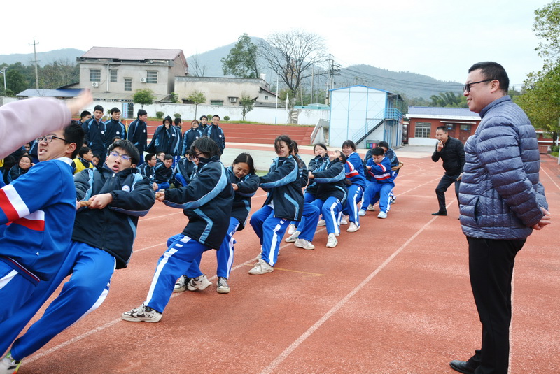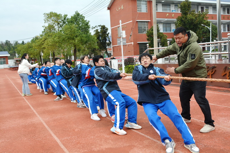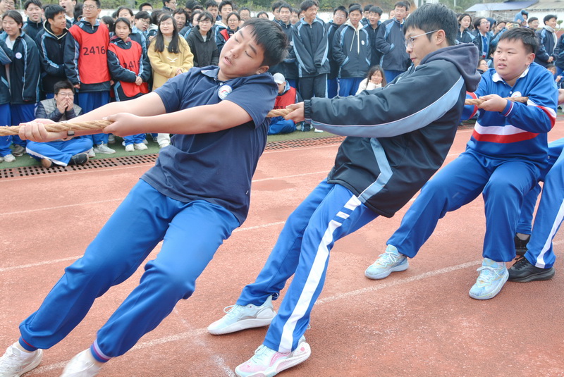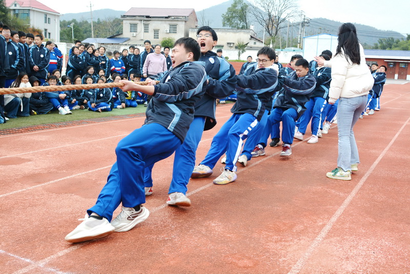 少年何妨梦摘星,敢挽桑弓射玉衡。比赛中,各班表现出了顽强的意志和拼搏精神,既赛出了水平又赛出了风格。在啦啦队同学震耳欲聋的“加油”呐喊声中,参赛队员卯足了劲,涨红了脸,抓紧了绳,全力以赴,努力争夺。加油声、叹息声、欢笑声此起彼伏,热闹非凡。一场场比赛牵动着老师们的心,学校领导、班主任老师、任课老师纷纷在旁加油助威。