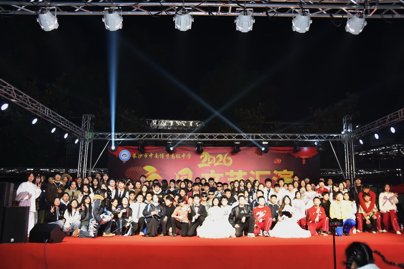 欢歌笑语,辞旧迎新。2025年12月30日晚6时许,长沙市中南博才高级中学沉浸在一片欢乐祥和的节日氛围之中,一场以“热爱青春、拥抱梦想”为主题的元旦文艺汇演在此隆重举行。全校师生与部分家长齐聚校园,共同欣赏了这场精彩纷呈的文化盛宴,欢庆新年的到来。
